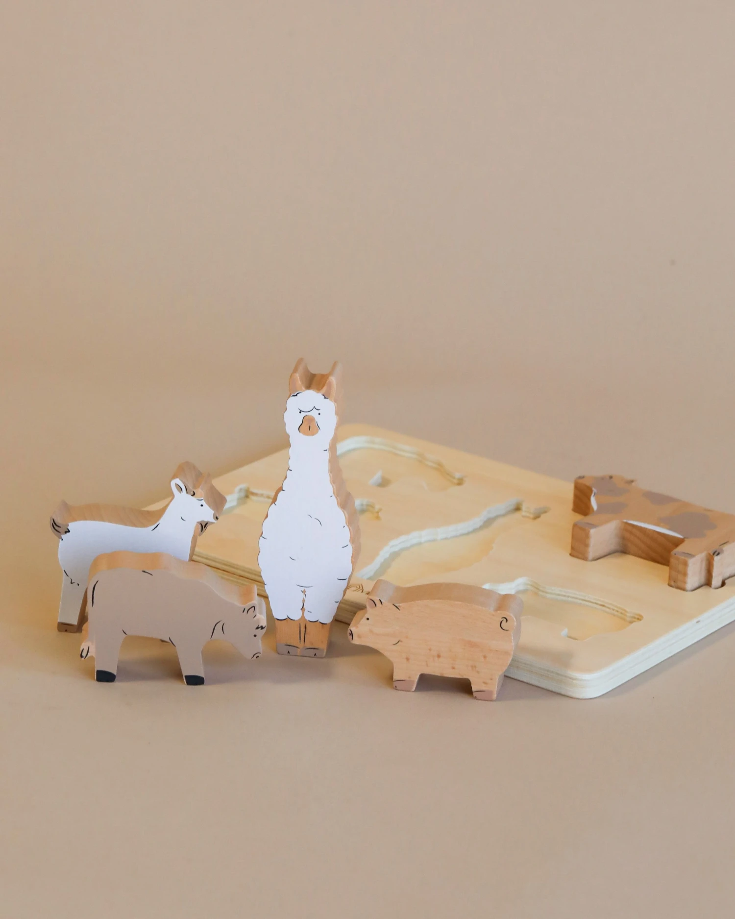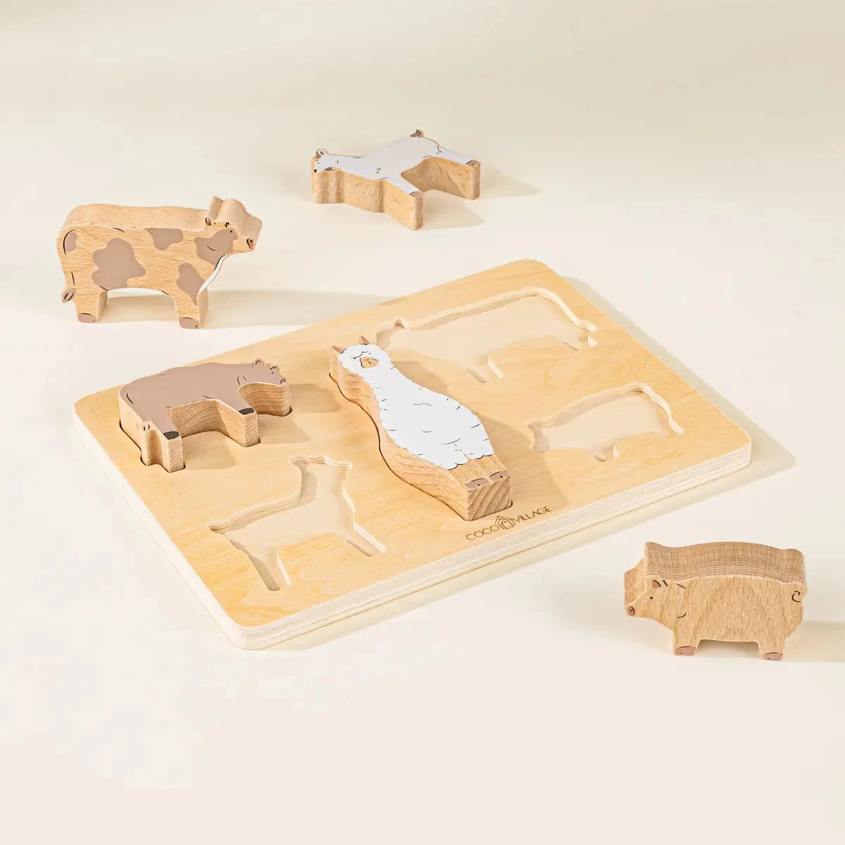 The Set of 5 Barn Animals on Wooden Plate is a fun and simple game!
