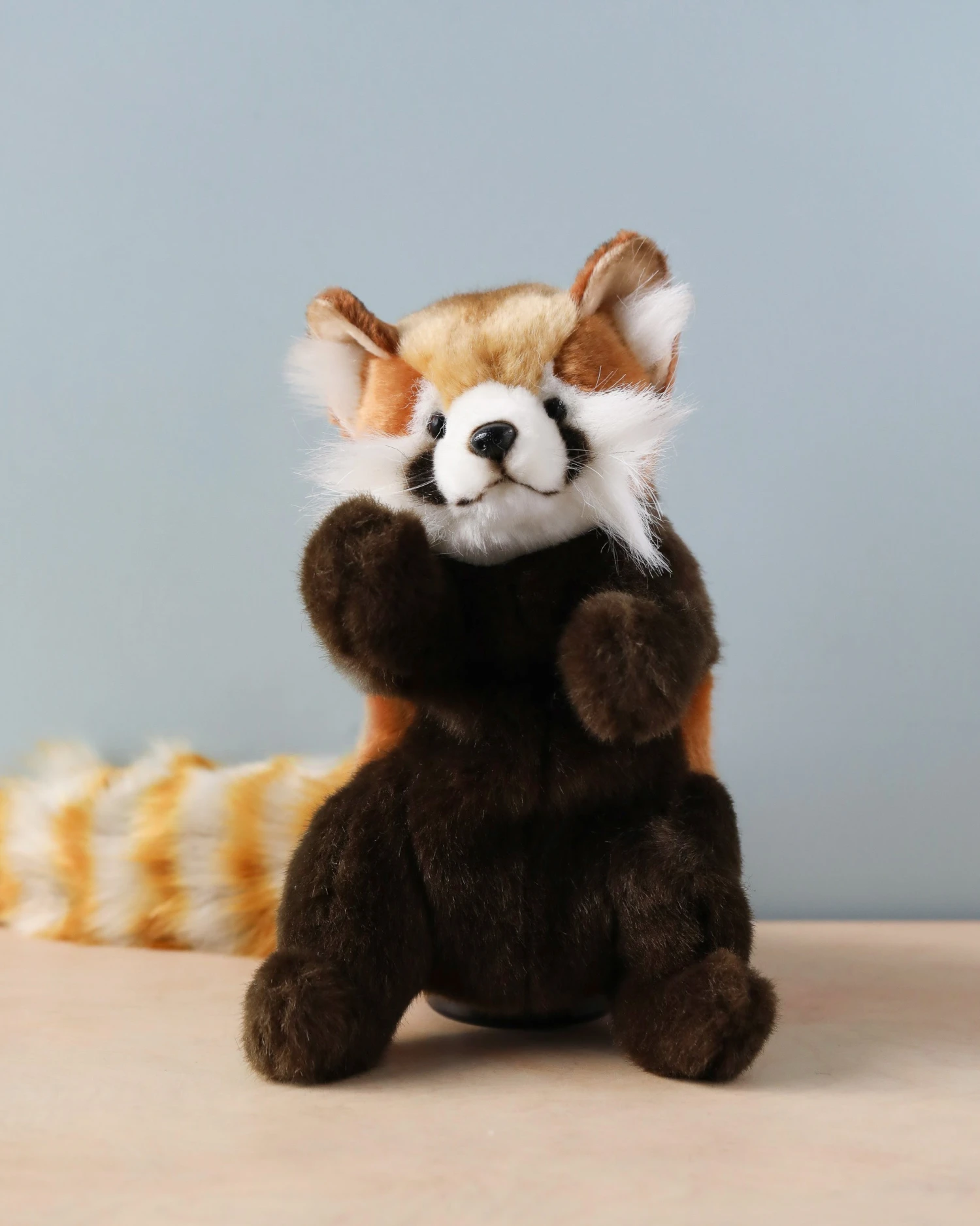 Artisans hand sew the animals “inside out”, an old world tradition that results in the mininization of seams, and their bodies are carefully “sculpted” to create “musculature” and “features” like movement in a walking or sitting position that are unique to each creature. On average, there are 42 separate pieces required to make each animal, that must be combined by a team of truly creative artists to create the distinctly realistic features that characterize HANSA animals. (Some animals have as many as 240 different parts!) Each animal is individually hand sewn, to give it a unique “personality”, there are more than 860 different fabrics and man-made furs from which the “coat” and “hides” are made, along with over 6000 sets of different eyes, whiskers, claws, noses, and related accessories allocated for creating these wonderful plush animals. Stuffing emphasizes careful attention to the placement of the highest quality man-made materials.