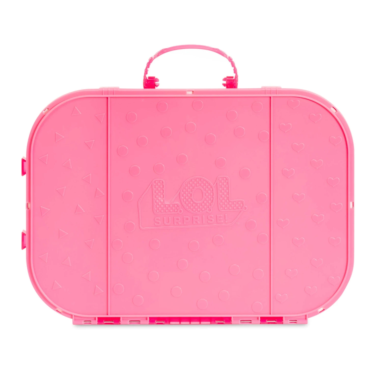 LOL Surprise Fashion Show On-the-Go is a 4-in-1 playset and carrying case. Play with LOL Surprise dolls on the fashion runway playset, display 18+ dolls and pets, store dolls and accessories, and carry away to take LOL Surprise on-the-go.