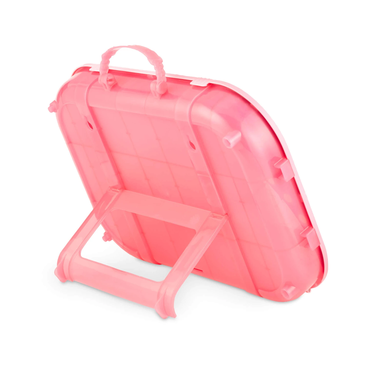 Connect multiple cases for even more possibilities. Cases connect side-to-side to create a wider display and play space. They also connect back-to-back to create a larger carrying case.