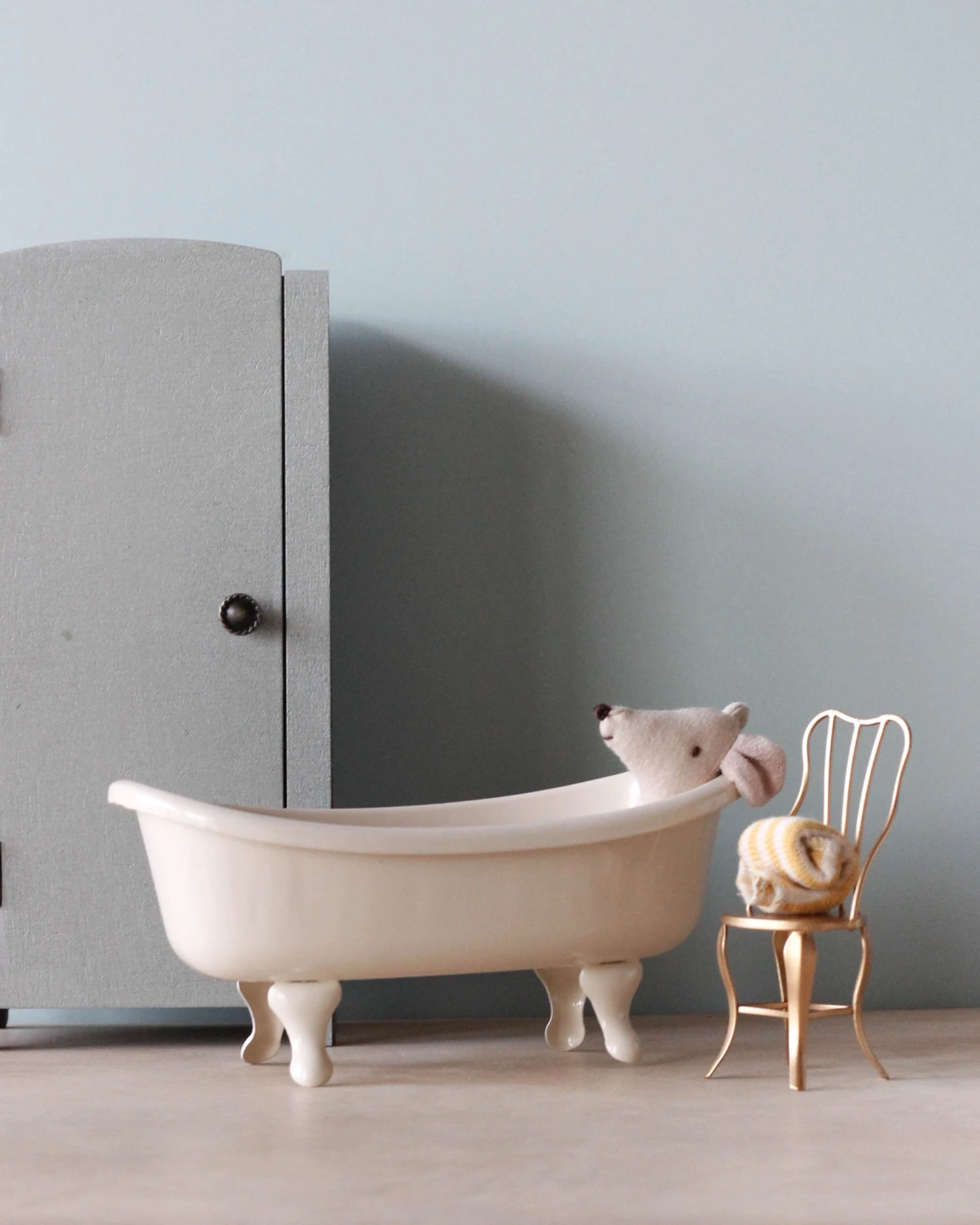 All your beloved Maileg friends will need a bath once a while. The vintage bathtub fits perfectly in the Maileg Dollhouse & Bathroom.