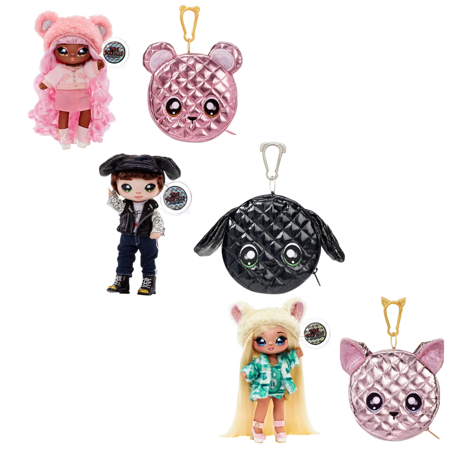 You’ll receive three 2-in-1 soft fashion dolls from the Na Na Na Surprise Glam Series: Cali Grizzly, Maxwell Dane, and Victoria Grand.