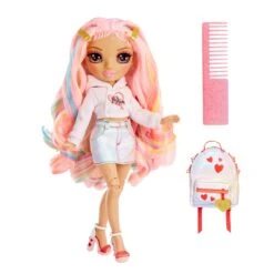 Taking sparkle to the next level, the glam series features eye-catching metallic fabrics in the animal-inspired doll fashions and purse which has a convenient cute, animal-shaped clip to attach to a backpack or larger purse.