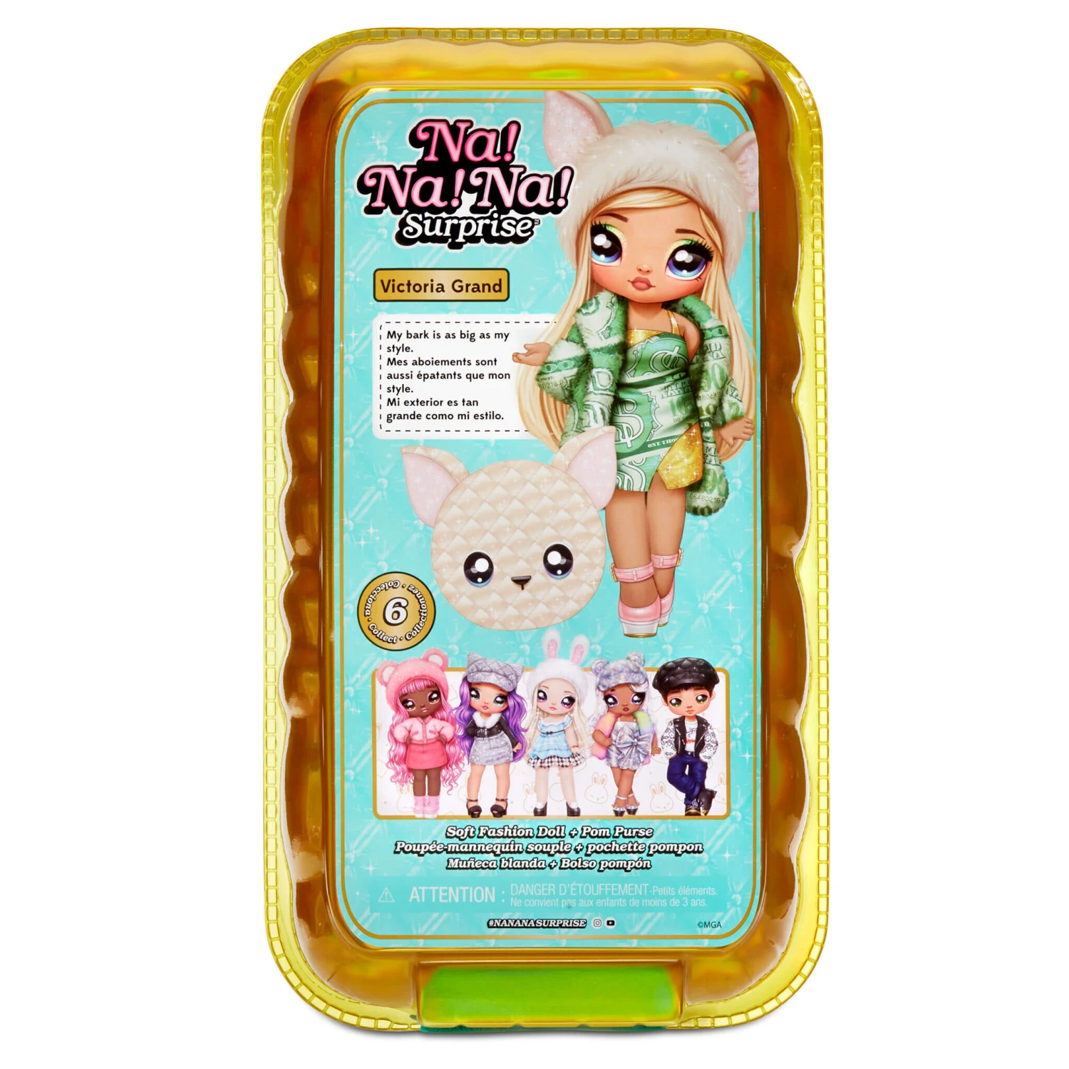 Na Na Na Surprise dolls are the first-ever soft, posable fashion dolls with printed face and fashion details. Now featured in a window box to show off all the quality details, it will be easier than ever to collect them all!​ Victoria Grand comes with a tag with her name, birthday and a little about her.