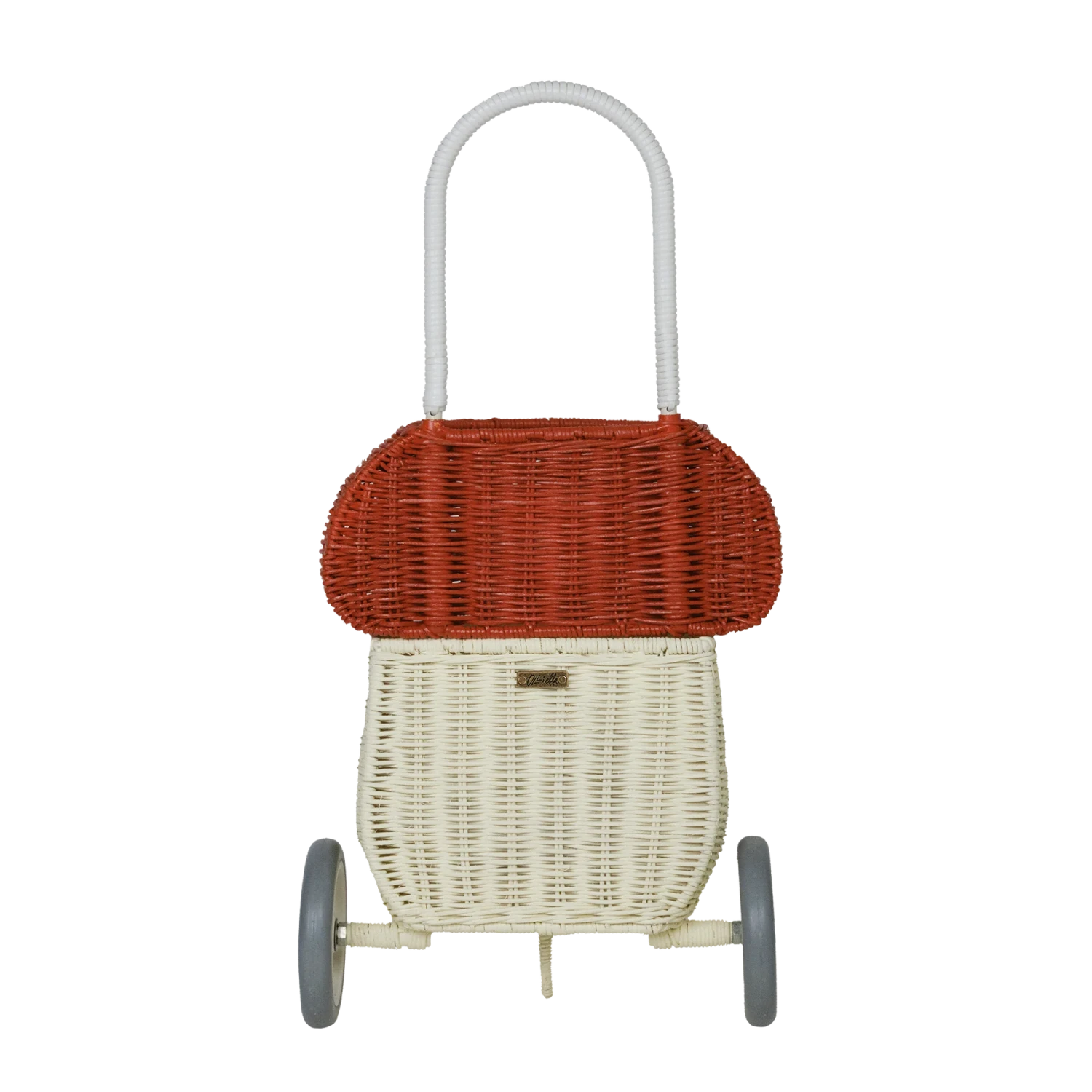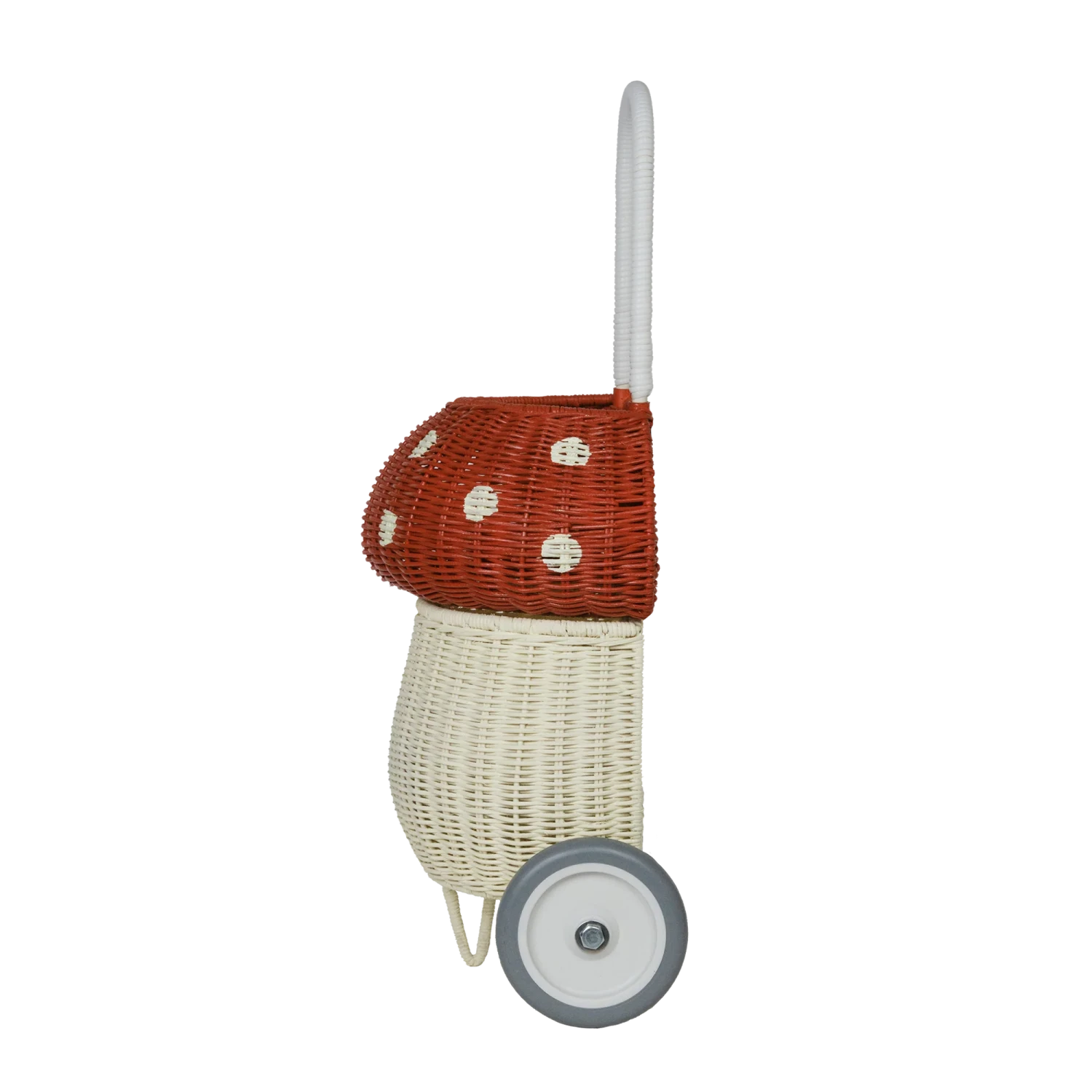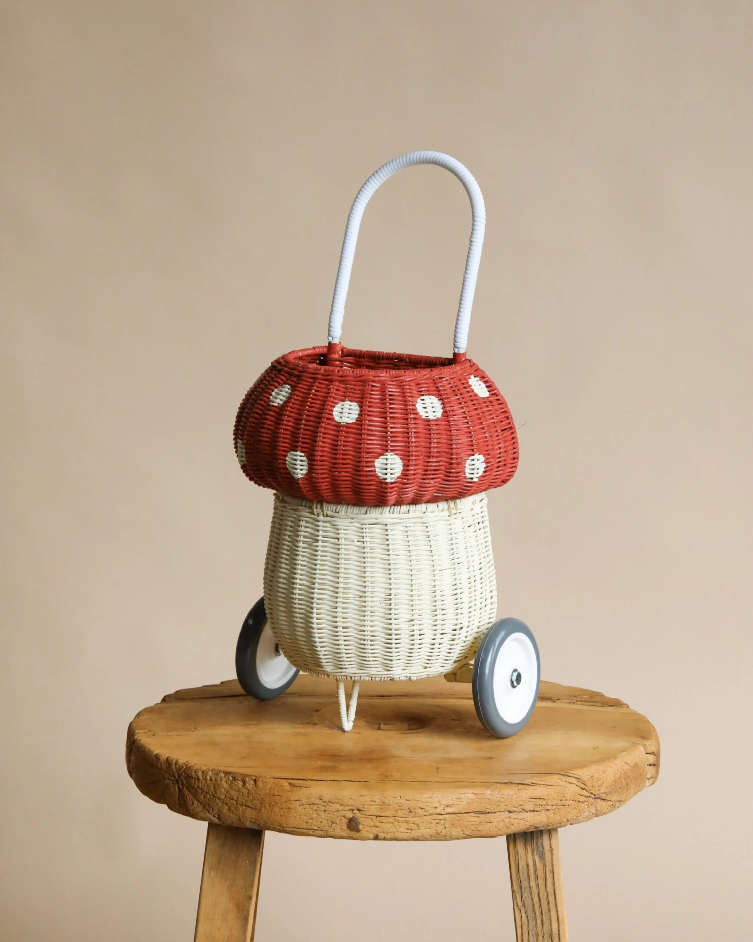 Meet the Olli Ella whimsical Mushroom Luggy in red and white. It exists in the world between practical and fairytale and is perfect for lugging about at home or on the go.