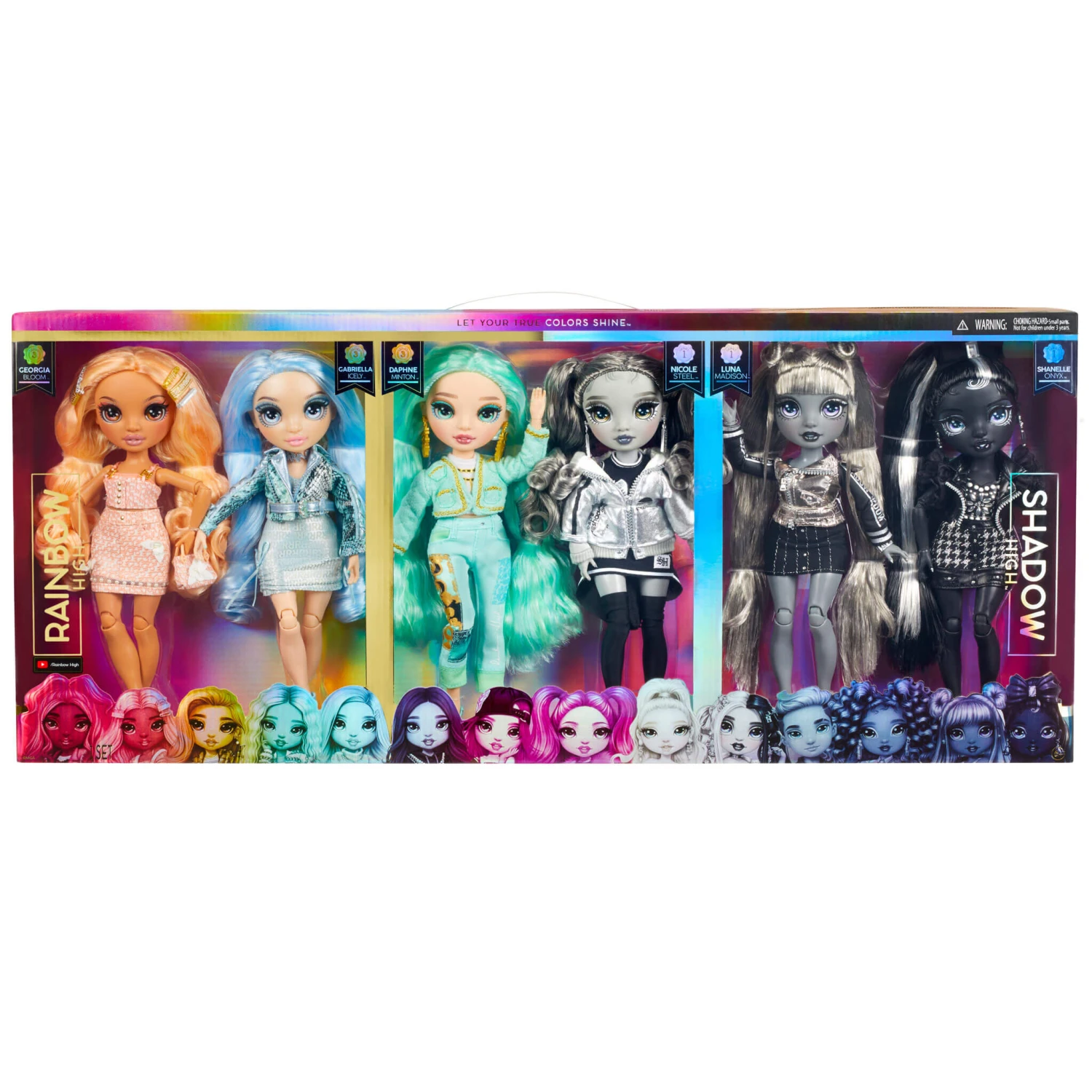Every school needs a rivalry! Expand your #TeamRainbowHigh vs #TeamShaodwHigh play in this multipack collection of Fashion Dolls.