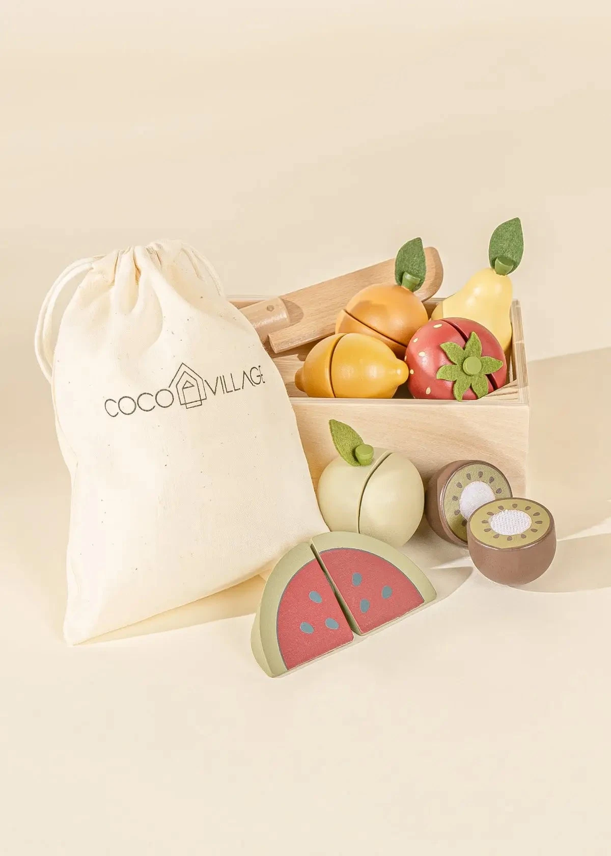 These beautiful fresh products are gonna be so good! This selection of 7 colorful fruits are a great addition to any wooden Mini-market or Kitchen. Plus, they are sliceable and come with the cutest wooden knife. Kids love to pretend play, which is perfect since imitation is an important and determining factor in the development of our little ones.